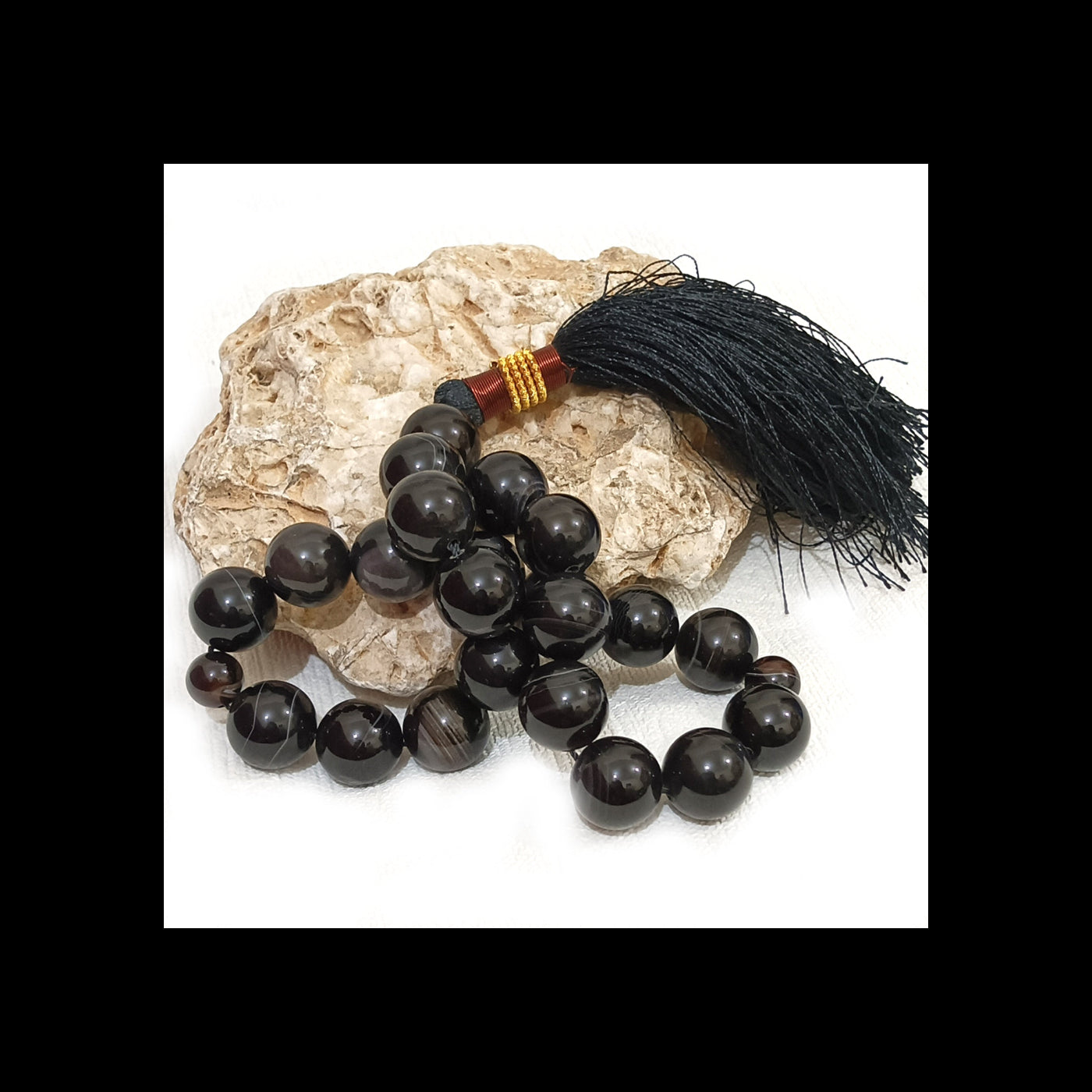 ہاتھ سے تیار کردہ سیاہ عقیق کی تسبیح